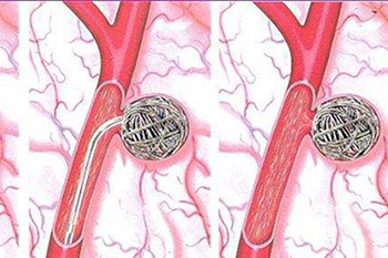 动脉瘤夹闭术其原理为用特制的一种无磁金属夹将动脉瘤从根部夹闭从而达到显著康复目的。先根据脑血管造影查出动脉瘤所在的位置,采用锁孔技术、微创开颅,开一个小孔,然后在高倍显微镜下把蛛网膜包裹的载瘤动脉解剖出来,降低动脉瘤内压,将血管充分显露出来;其次,将动脉瘤的瘤颈、瘤体显露出来,且将与动脉瘤粘贴的细小脑穿通血管从动脉瘤表面分离出来,防止因手术误夹这些血管而带来的严重脑损害;后用特制的脑动脉瘤夹夹闭脑动脉瘤与正常脑动脉相连的“脖子”,阻断动脉瘤体遭受到血液的冲击从而防止动脉瘤破裂出血。