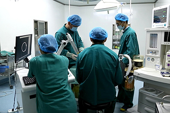 机器人立体定向利用影像学定位(CT、MRI或DSA)和立体定向仪引导,将穿刺针、微电极等显微器械置入脑内特定靶点,通过记录电生理、留取组织标本、产生毁损灶、去除病变等方法,诊断和治疗中枢神经系统的各种病症。手术创伤小,痛苦较小,基本不出血;手术入孔直径约5毫米,整个手术过程患者在清醒状态下进行,做到了真正意义上的痛苦较小、微创手术。