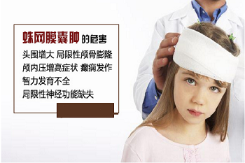 蛛网膜囊肿危害我们可从疾病的症状和体征说起。一些蛛网膜囊肿终身无症状,囊肿进行性增大,压迫周围神经结构或阻碍正常脑脊液循环通路,可出现下列症状和体征:头围增大、局限性颅骨膨隆、颅内压增高症状、癫痫发作、智力发育不全、局限性神经功能缺失。不同部位的囊肿有不同的症状,如鞍区囊肿往往有视力视野改变或出现内分泌症状。
